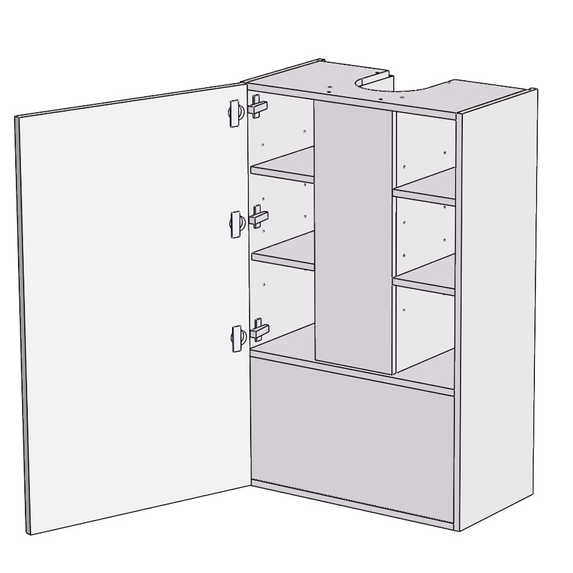 Кухонный шкаф верхний для встроенной вытяжки с 1 распашным фасадом, а также 1 или 2 парами полок, в зависимости от высоты шкафа. Универсальная ниша под корпус встраиваемой вытяжки высотой - до 312 мм и глубиной до 296 мм.