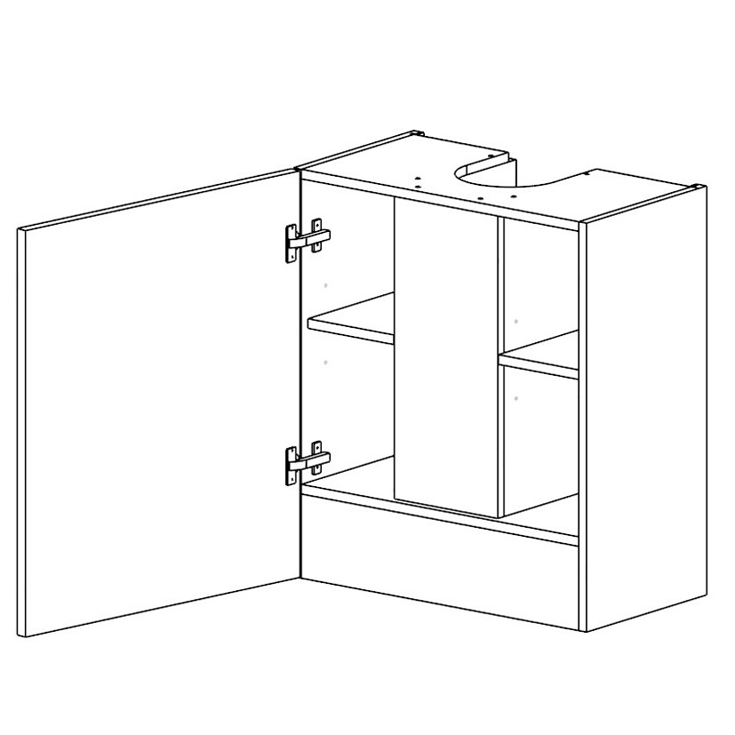 Кухонный шкаф верхний для встроенной вытяжки с 1 распашным фасадом, а также 1 или 2 парами полок, либо без полок, в зависимости от высоты шкафа. Высота выступающей за модуль части вытяжки - 40 мм. Ниша под корпус встраиваемой вытяжки высотой - 140 мм. Сторона установки дверцы варьируется.