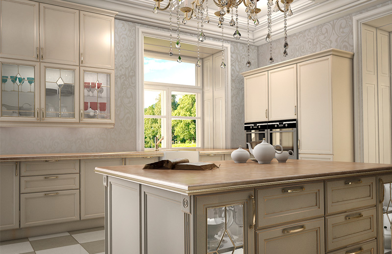 Внешний вид окрашенного фасада и фасада в финиш-декоре в данном цветовом решении практически идентичны. Финиш-декор Античный кремовый №251 более светлый по тону и нейтральнее по цвету, что расширяет возможности комбинирования кухни с другими материалами отделки помещения. Предлагает более строгое, классическое сочетание с патиной.